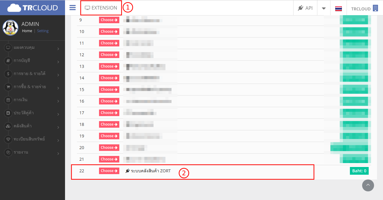 1.ส่วนเสริมการใช้งาน ZortOut สามารถกดเข้ามาที่ Extension ตามหมายเลขที่ 1